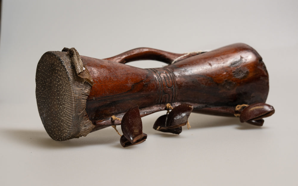 A kundu is a traditional drum from Papua New Guinea, carved from a single piece of wood and often decorated with intricate patterns or cultural designs. The kundu is played by hand and produces a deep, rhythmic sound used in dances, ceremonies, storytelling, and celebrations, serving as both a musical instrument and a cultural symbol of unity and heritage.